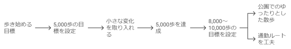 特に初心者の方は、最初から高い目標を設定するのではなく、例えば5000歩から始め、徐々に歩数を増やしていく方法が効果的です。継続することが成功の鍵です。