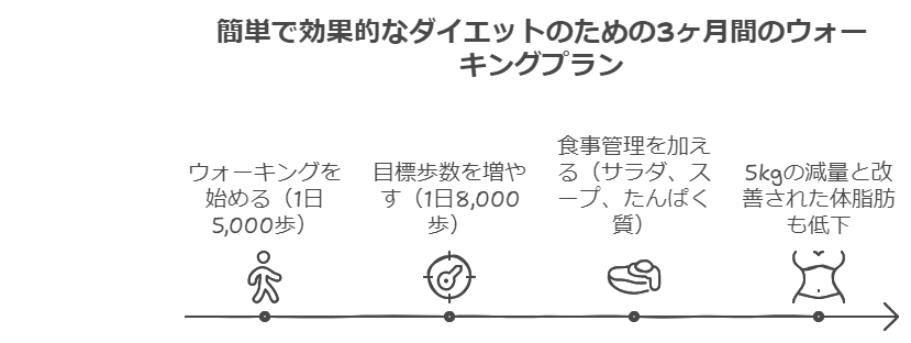 「本当にただ歩くだけで痩せられるの?」と疑問に思う方もいるかもしれません。確かに、歩くことだけで急激な体重減少は難しいですが、継続して「歩数」を意識するだけで、確実に体が変わっていきます。