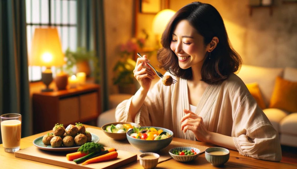 たんぱく質は満足感を得やすく、夜間の間食を防ぐ手助けにもなります。豆腐や低脂肪のヨーグルトは、軽くて消化も良いので、遅い時間の夕食に適しています。たとえば、豆腐をベースにしたサラダや、デザート代わりにヨーグルトを少し食べることで、ダイエット中でも栄養を摂取しつつ、満足感を保つことができます。